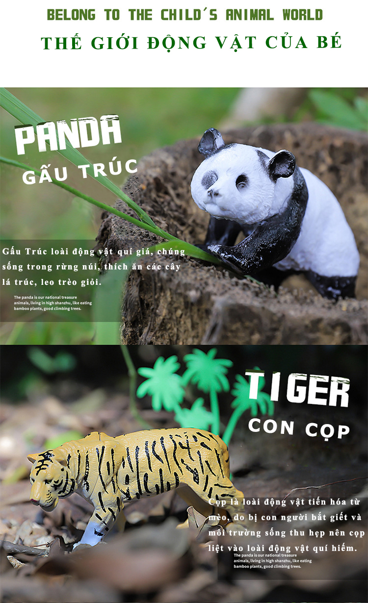 Bộ đồ chơi khám phá thú hoang dã. Được mô tả thế giới hoang dã thọng qua các mô hình. Ngoài ra còn có các chi tiết như hoa, lá, đá nhằm giúp bé sáng tạo khi chơi. Mô phỏng như thế giới động vật thật. Giúp trẻ phát triễn các kỹ năng nhận thức. Giúp bé gần gũi hơn và hiểu biết nhiều hơn trong thế giới động vật quanh ta. Qua đó các bậc phụ huynh cũng có thể tương tác dạy cho con cái nhiều thứ thông qua đồ chơi mô phỏng thú hoang dã.