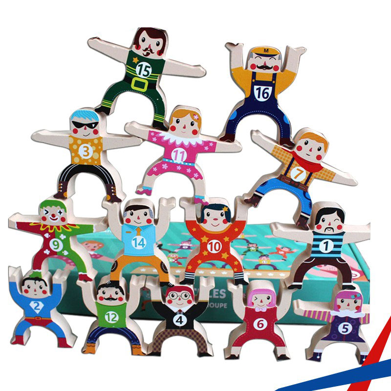 Đồ chơi trẻ em Bộ Lắp Ráp Thăng Bằng Giúp Bé Khả Năng Tập Trung, Khéo léo Bộ đồ chơi bao gồm 16 chú hề gỗ làm xiếc cao cấp 02 quả bóng lớn và