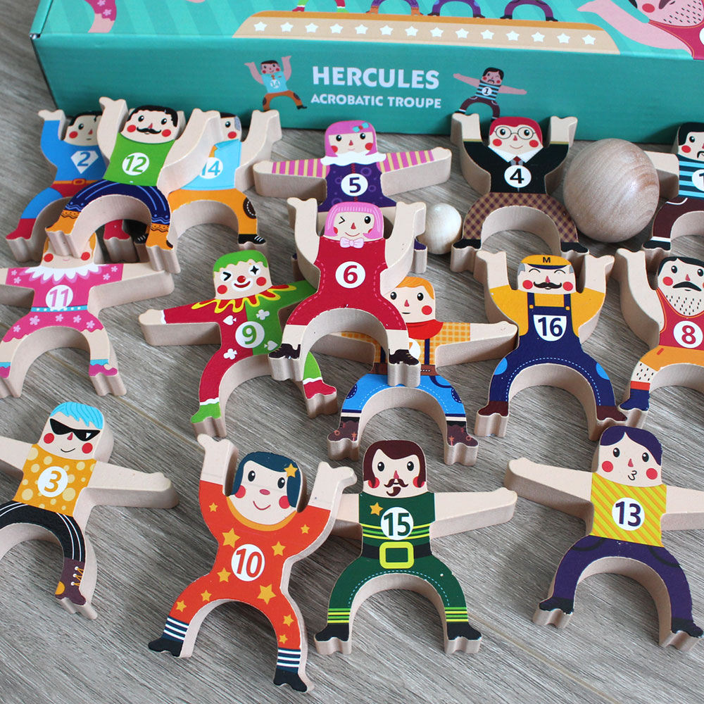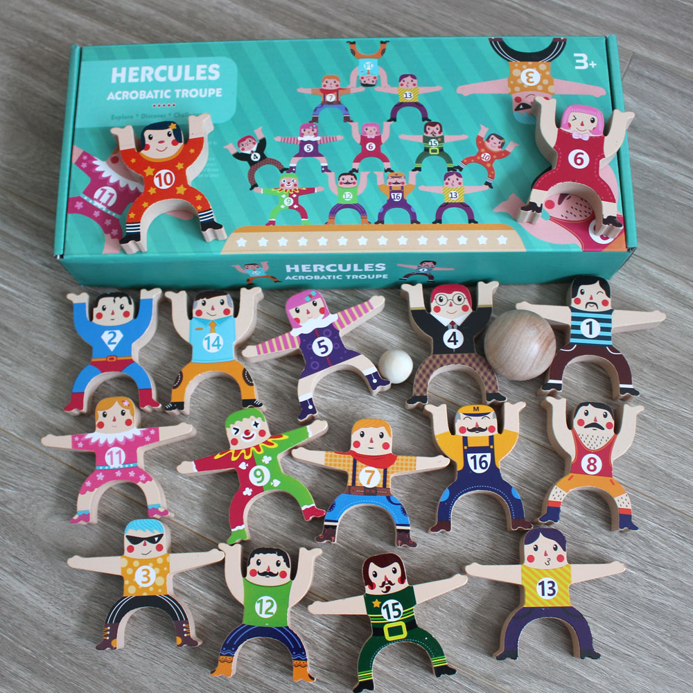 Đồ chơi trẻ em Bộ Lắp Ráp Thăng Bằng Giúp Bé Khả Năng Tập Trung, Khéo léo Bộ đồ chơi bao gồm 16 chú hề gỗ làm xiếc cao cấp 02 quả bóng lớn và nhỏ 4 thanh gỗ dài Giúp người chơi sáng ra nhiều cách chơi khác nhau