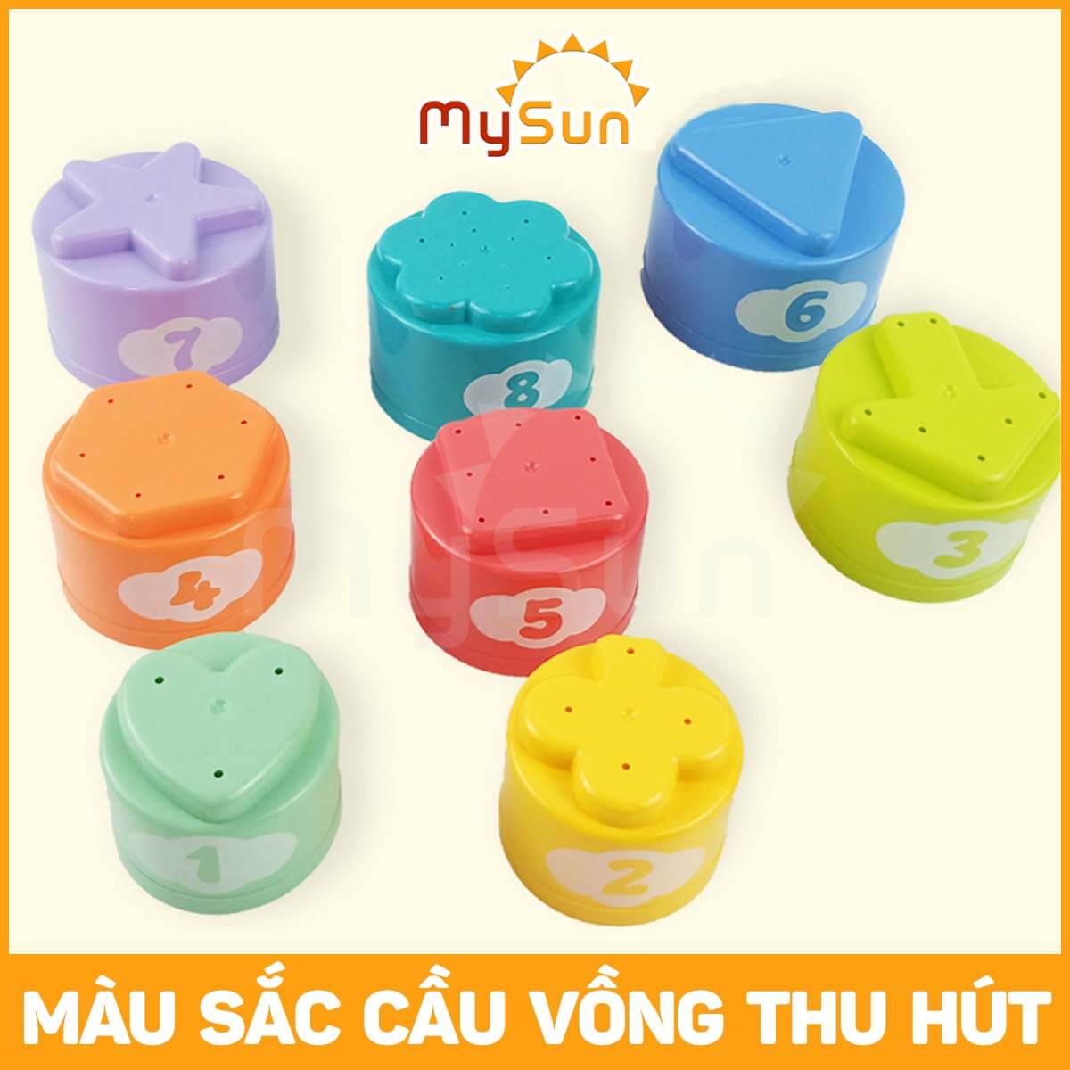 - Các chi tiết góc cạnh được bo tròn mềm mại đảm bảo sự an toàn tuyệt đối cho bé. THÔNG SỐ BỘ ĐỒ TRÒ CHƠI XẾP CỐC PHÁT TRIỂN TRÍ TUỆ CHO TRẺ EM BÉ 1 2 3 4 5 TUỔI MYSUN