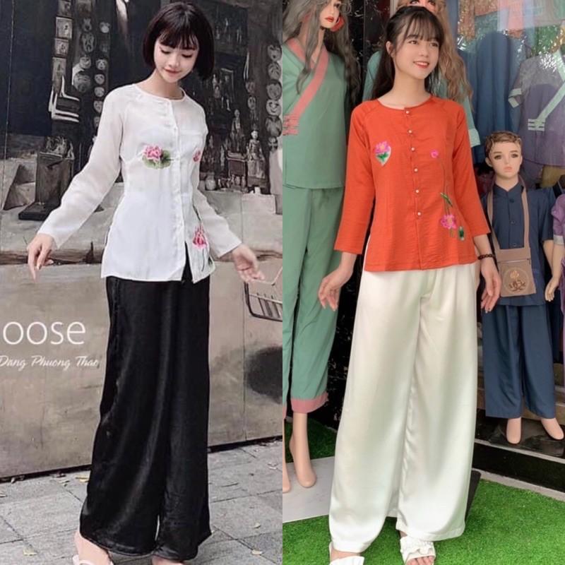 ✨Đồ Lam Đi Chùa# Bà Ba Vải Cao Cấp Thêu Hoa # Quần Áo Nữ # Đồ Bộ Nữ