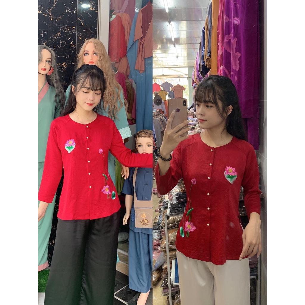 Đồ lam đi chùa - áo xống đi chùa - Đồ lam phật tử - Bộ đồ đi lễ chùa thêu sen cổ tàu (Ảnh + Video cửa hàng tự quay)