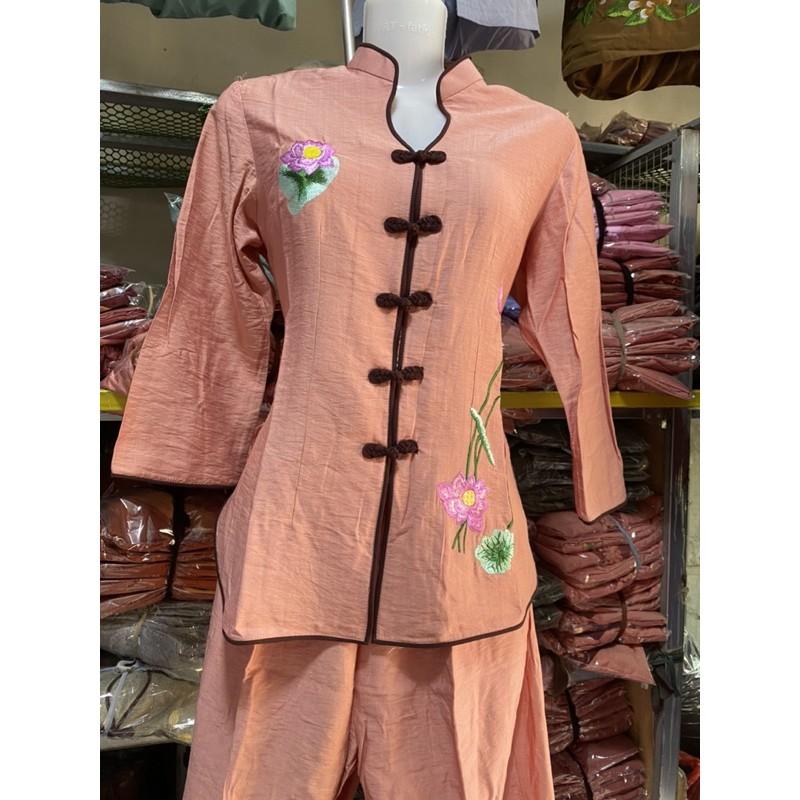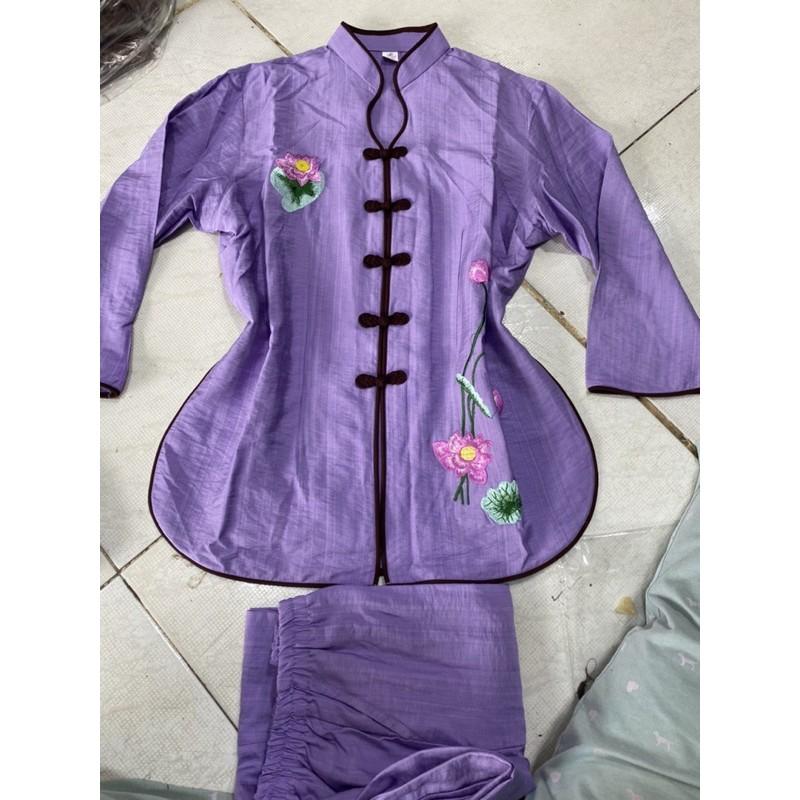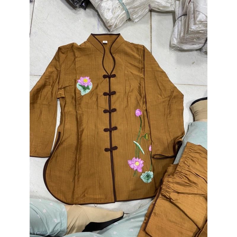 Quần áo phật tử, đồ lam đi chùa mẫu áo dài lụa thêu sen