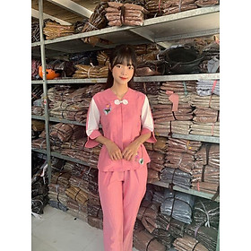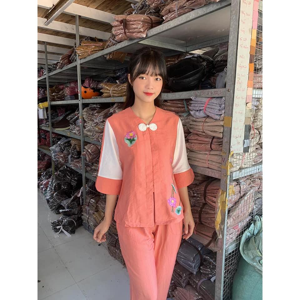 Mẫu pháp phục nữ - quần áo Phật tử đi chùa, đồ lam chất kate lụa mềm có co giãn Sen Hồng 0898553583