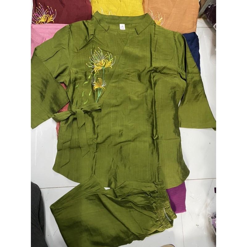 Chất Vải Lụa Pháp Phối Gấm Cao Cấp Hoặc Vải Lụa Phối Gấm Tuỳ Màu Và Size Nên Chất Vải Khác Nhau Quần Ống Rộng Cổ Áo Chui Không Cài Nút BÁN LẺ GIÁ SỈ