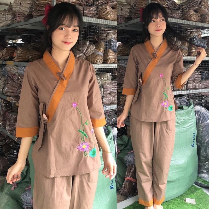 Quần áo phật tử đồ lam đi chùa mẫu xéo nơ An Yên