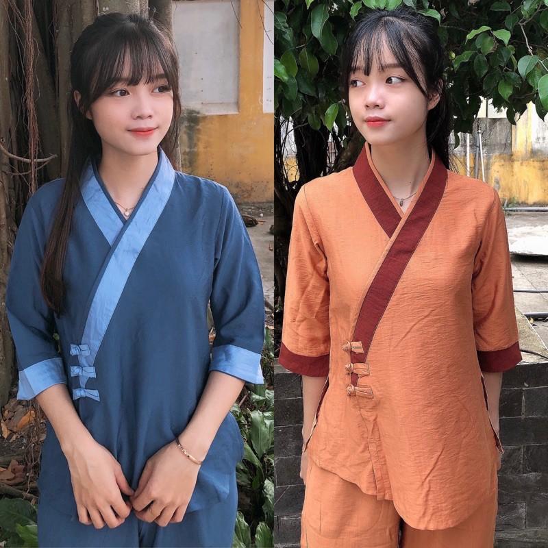 Bộ đồ bà ba nam nữ vải kate Nhật. Đồ lam đi chùa dáng bà ba truyền thống giản dị