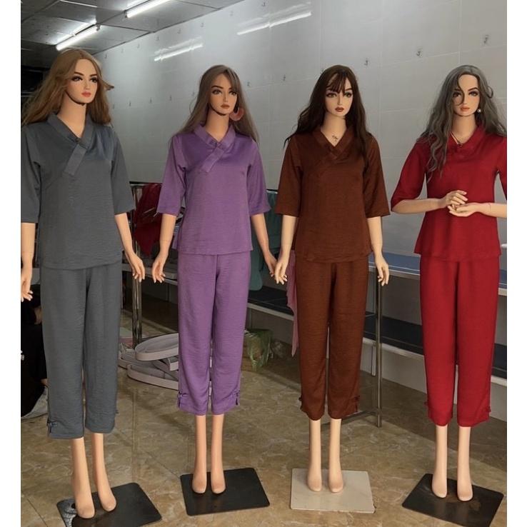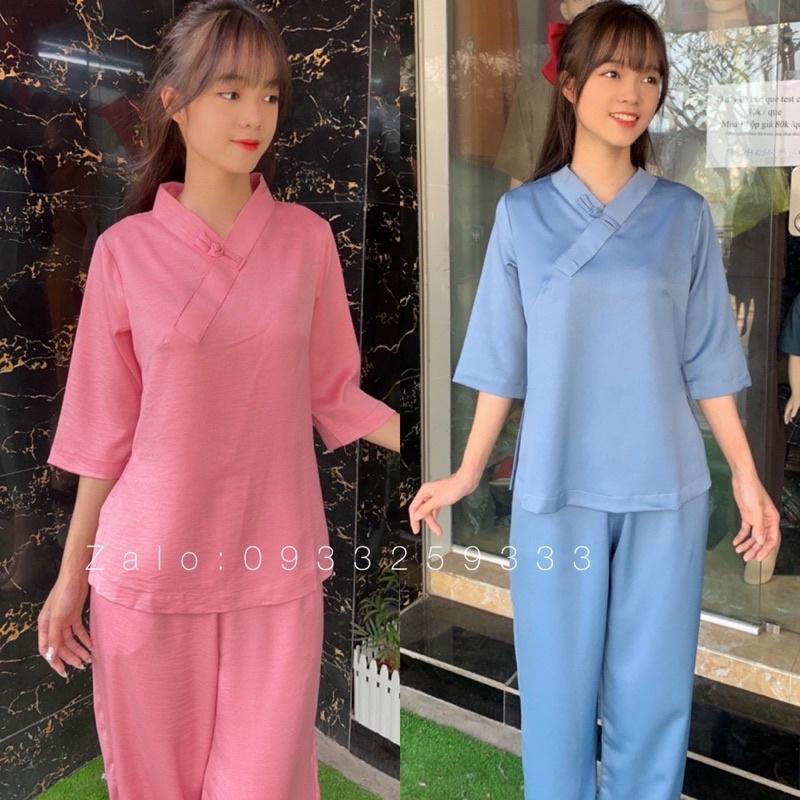 Mẫu pháp phục nữ - quần áo Phật tử đi chùa, đồ lam chất kate lụa mềm có co giãn Sen Hồng 0898553583