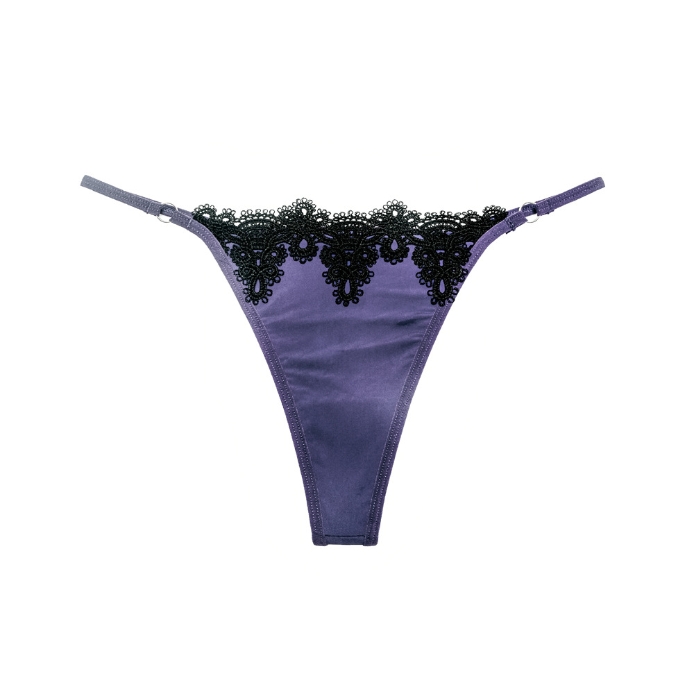 Màu sắc: Tím than Chất liệu: Ren mềm BRA: Fresize và có tăng đơ điều chỉnh độ rộng, móc gài sau lưng QUẦN Chữ Y/Đùi: - S: V3 dưới 80cm - M: V3 từ 80-95cm