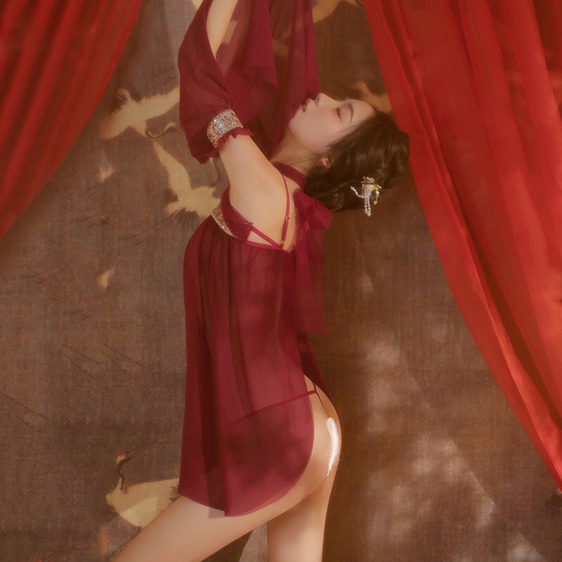 Sản phẩm bao gồm : Áo choàng + Bra yếm + Quần váy + Chip lọt Đồ ngủ cổ trang tạo cho bạn cảm giác mới mẻ hấp dẫn, tôn lên vẻ đẹp quý phái,