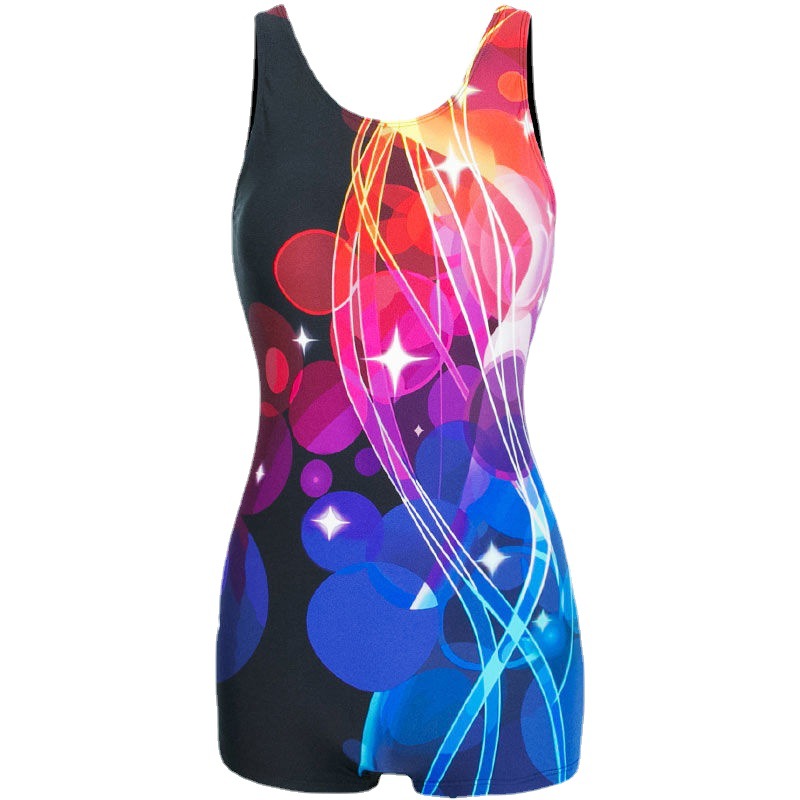 - Mẫu đồ bơi liền thân trẻ trung cho các cô nàng thích vận động nhưng vẫn đảm bảo kín đáo. - Thiết kế liền thân với quần đùi dáng dài gần ngang gối giúp