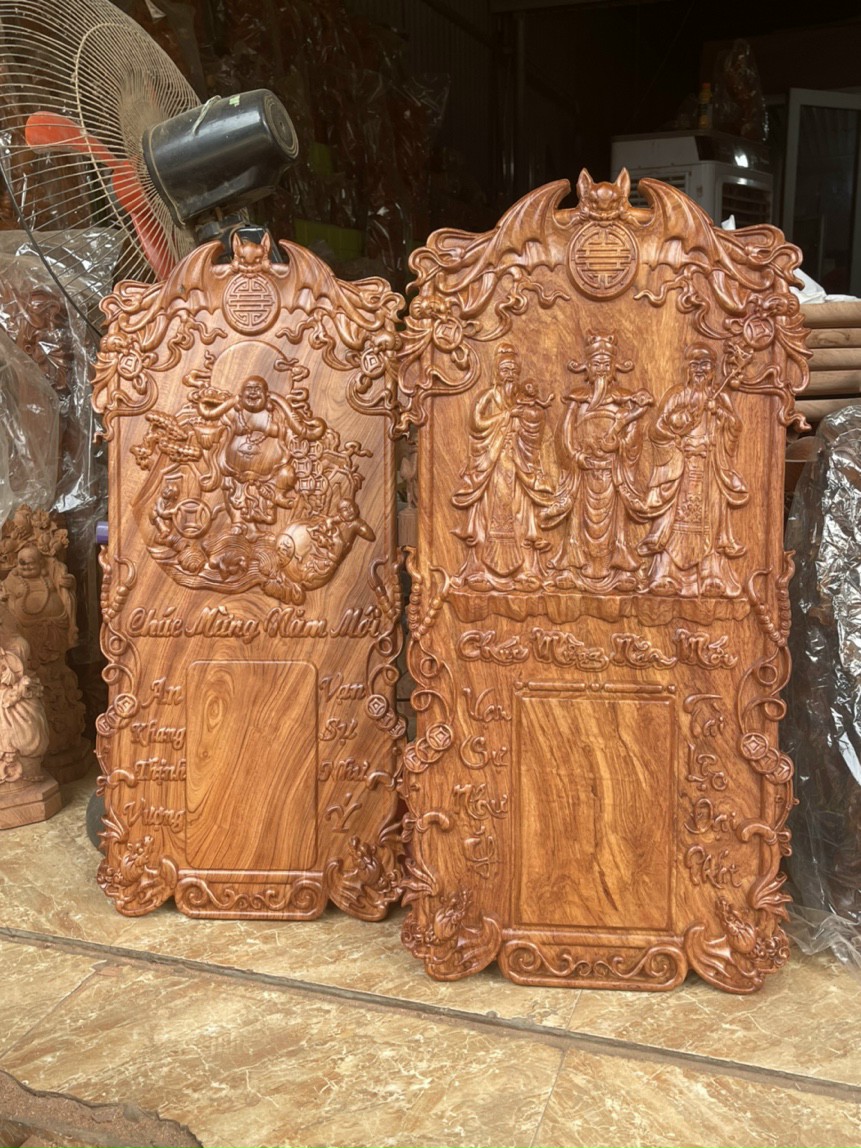 _ Đốc lịch treo tường khắc phúc lộc thọ được làm bằng chất liệu gỗ hương đá tự nhiên 100%