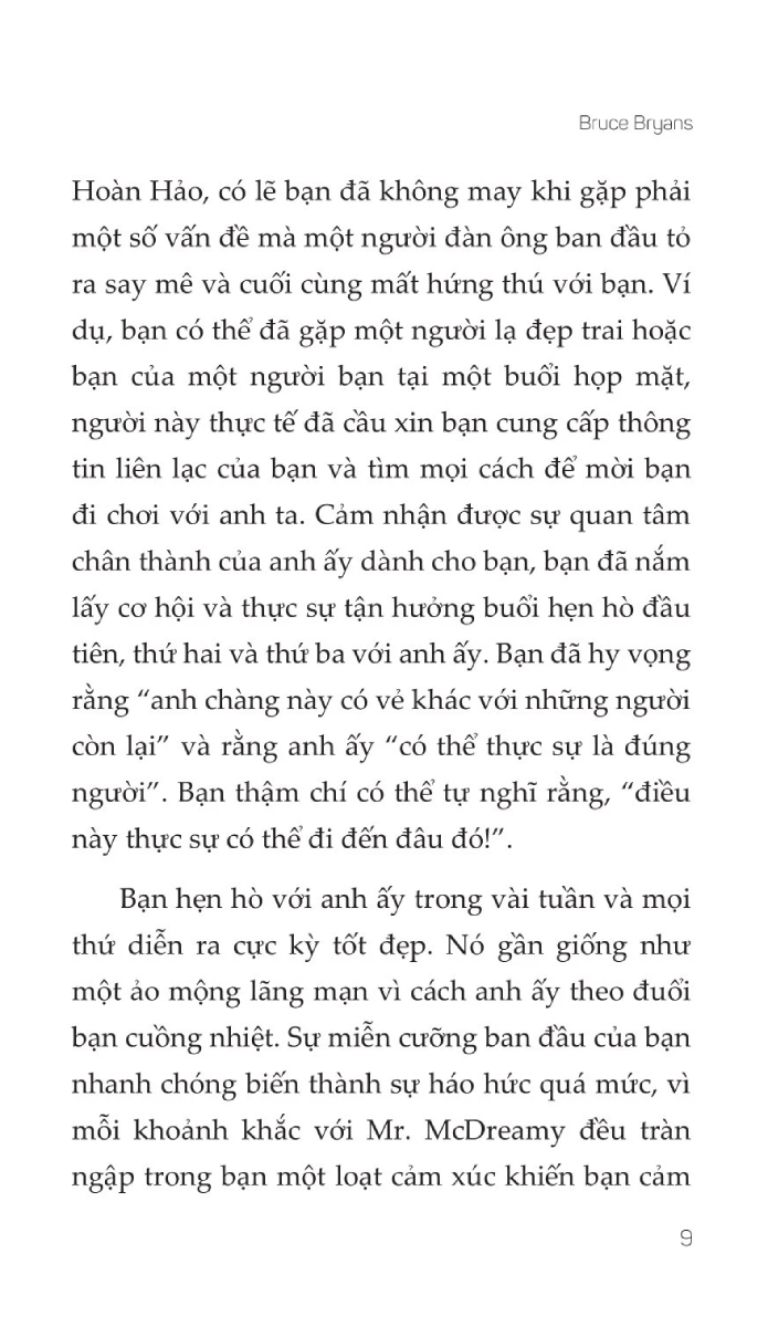 Bruce Bryans là một tác giả thành công với niềm đam mê nghiên cứu về các nghi thức hẹn hò. Bruce đã viết nhiều cuốn sách về các chủ đề bao gồm: nam tính, thu hút, chiến lược hẹn hò và động lực giới trong các mối quan hệ lãng mạn. Mục đích chính của Bruce là cung cấp thông tin thiết thực, dễ thực hiện, giúp nam giới và phụ nữ nâng cao giá trị hẹn hò và khả năng tìm kiếm người bạn đời lý tưởng.