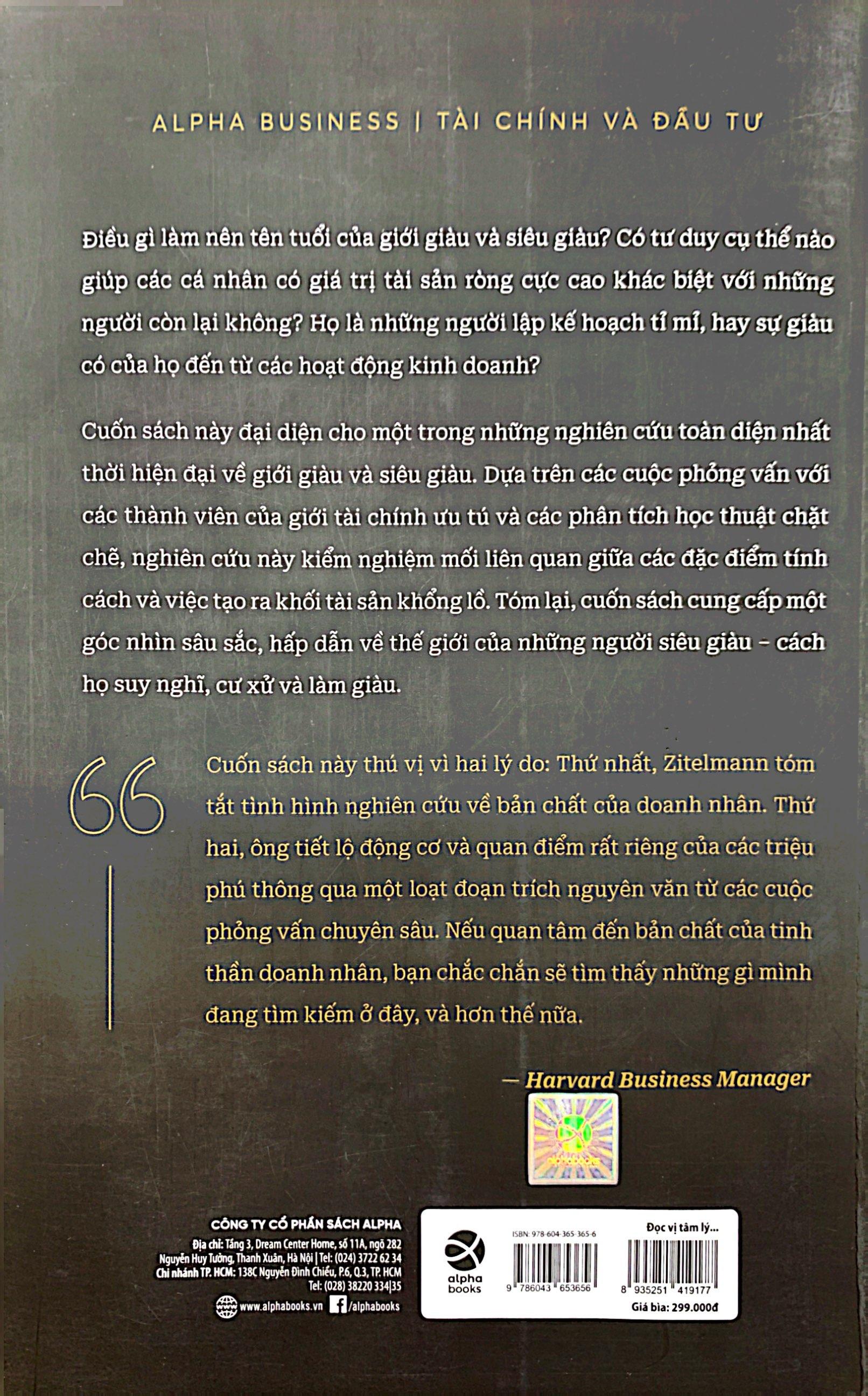 “Cuốn sách này thú vị vì hai lý do: Một mặt, Zitelmann tóm tắt tình hình nghiên cứu về bản chất của doanh nhân. Mặt khác, anh ấy tiết lộ động cơ và quan điểm rất riêng của các triệu phú thông qua một loạt đoạn trích nguyên văn từ các cuộc phỏng vấn chuyên sâu. Nếu quan tâm đến bản chất của tinh thần doanh nhân, bạn chắc chắn sẽ tìm thấy những gì bạn đang tìm kiếm ở đây, và hơn thế nữa.” ―Harvard Business Manager