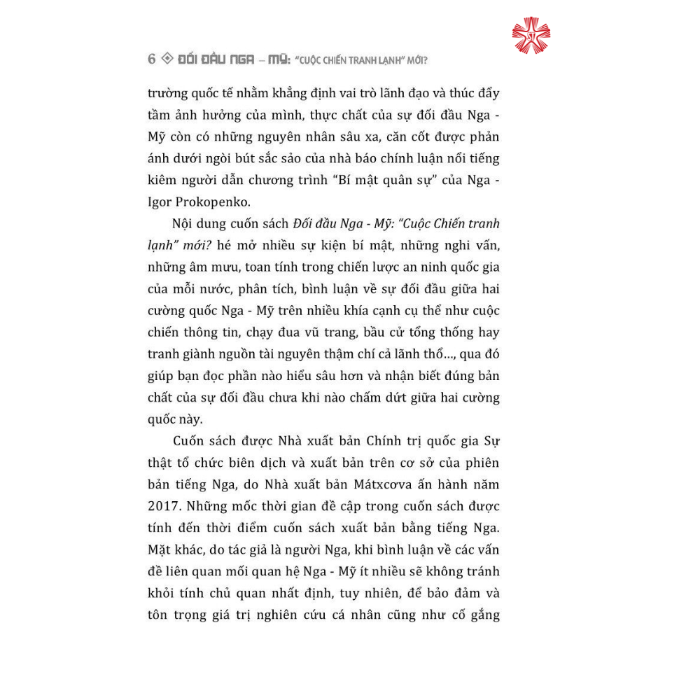Mua tại TiktokNội dung cuốn sách sách Đối đầu N – M.ỹ: Cuộc ế lạnh mới? sẽ hé mở nhiều sự kiện bí mật, những nghi vấn, tranh luận; những âm mưu, toan tính trong chiến lược quốc gia của mỗi nước về sự đối đầu giữa hai cường quốc N – M.ỹ trên nhiều khía cạnh cụ thể như cuộc chiến thông tin, chạy đua v.ũ , bầu cử t.ổ t.h.ố hay tranh giành nguồn tài nguyên thậm chí cả lãnh thổ…, qua đó giúp bạn đọc phần nào hiểu sâu hơn và nhận biết rõ bản chất sự đối đầu chưa khi nào chấm dứt giữa hai cường quốc này.