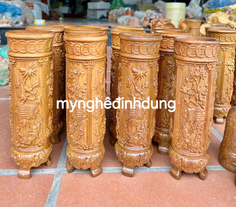 ✨Đôi Ống cắm nhang hương khắc tứ quý bằng gỗ bách xanh thơm nức cao 30x9x9cm