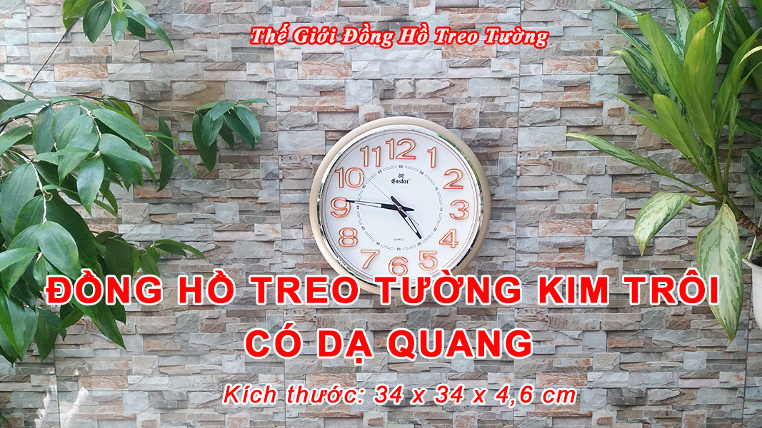 • Đồng hồ Treo tường Cao Cấp EASTAR có Dạ quang (*), máy đồng hồ Kim trôi mặt tròn Thương hiệu Gastar, đường kính 34 cm, dày 4,5 cm.