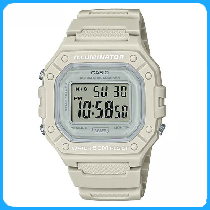 Đồng hồ Casio W-218H-1BVDF thuộc Casio nam dây nhựa, mặt vuông điện tử, chống nước 50m, pin 7 năm.