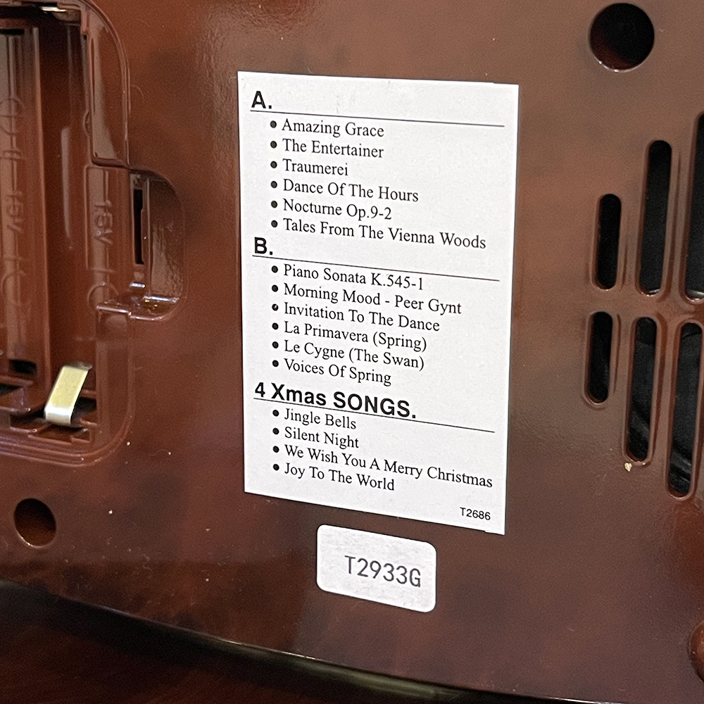 Mua tại TiktokĐồng hồ để bàn Nhật Bản Rhythm 4RH796WU23, dùng 4 pin tiểu (AA x 4). Vỏ nhựa màu nâu vân gỗ / mạ vàng siêu bền màu. Kích thước 22.5 x 29.0 x 15.5cm, trọng lượng 1.18kg. Âm thanh siêu trầm CTS ( Clarion Tone System ) độc quyền của Rhythm cho chất âm trầm, vang với 12 giai điệu bất hủ, 4 bản giáng sinh, nhạc chuông nhà thờ Westminster mỗi đầu giờ. Núm chỉnh âm lượng tiện. Mắt Cảm ứng ánh sáng tự động không phát nhạc khi thiếu sáng. Cum lắc xoay cẩn pha lê .