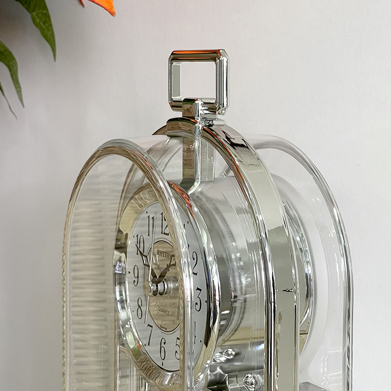 Kích thước: Cao 29cm, đường kính 13,5cm Một chiếc đồng hồ hữu ích như một vật trang trí. Chiếc đồng hồ thanh lịch làm bằng nhôm mạ bạc sáng bóng với thiết kế cổ điển