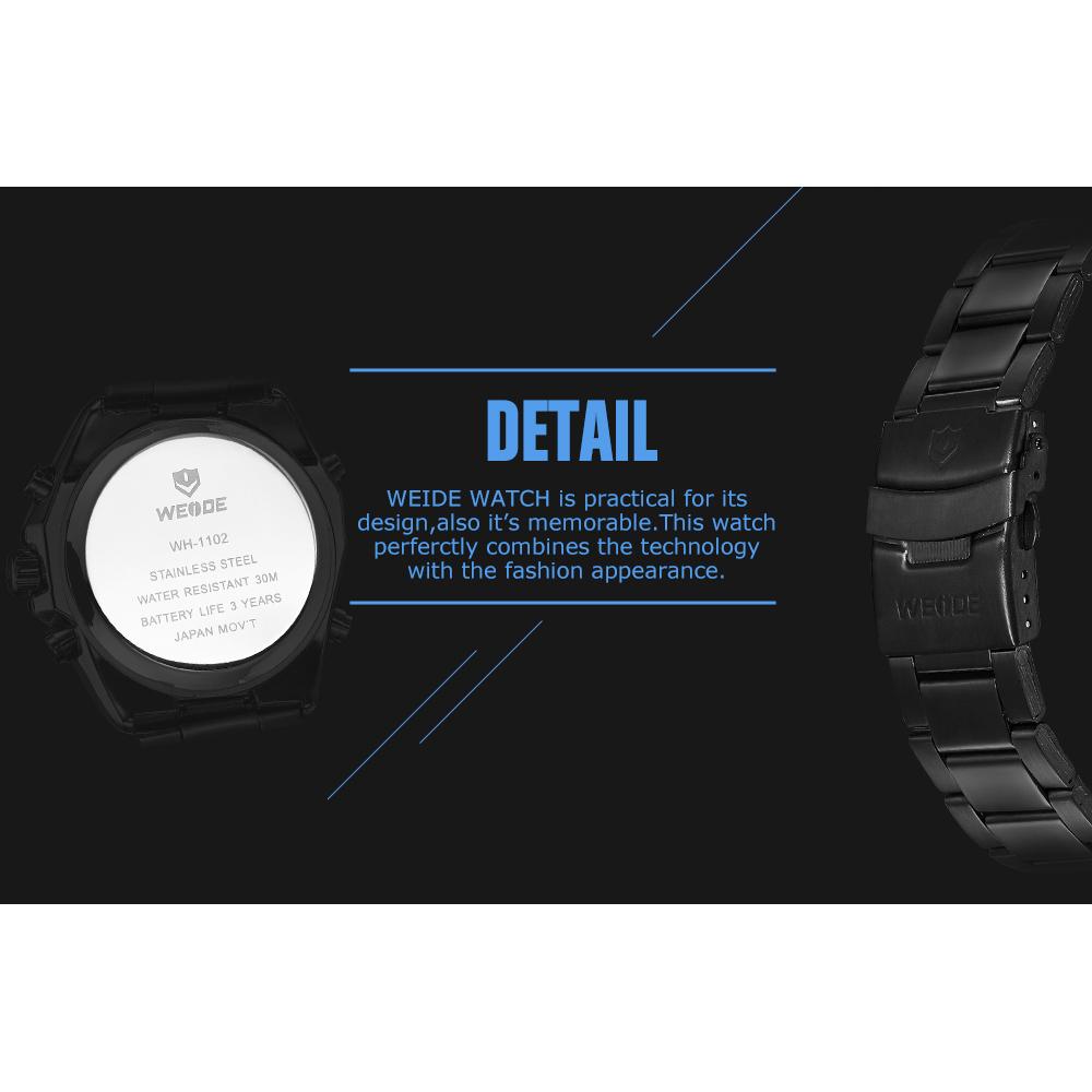 WEIDE watch has professional craft, durable and comfortable to wear. The stylish and exquisite workmanship will keep you at the forefront of the fashion. Durable watch band, 3ATM water-resistant as well as many practical functions. You deserve it!