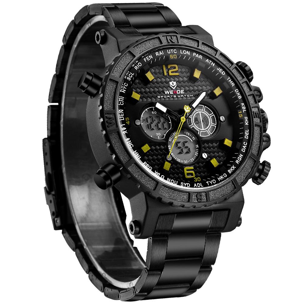 WEIDE WH6903 is a stylish sport watch with the function of date, week, month, on time alarm and stopwatch that certainly catches your heart! Features: With analog and digital display, quartz and digital movements keeps
