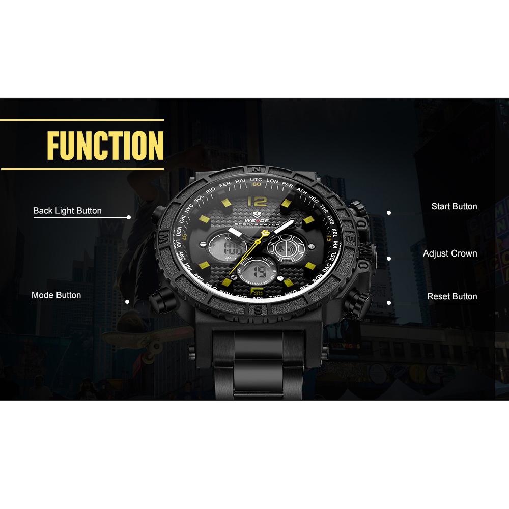 Introduction: WEIDE watch has professional craft, durable and comfortable to wear. The stylish and exquisite workmanship will keep you at the forefront of the fashion. Durable watch band, 3ATM water-resistant as well as many practical