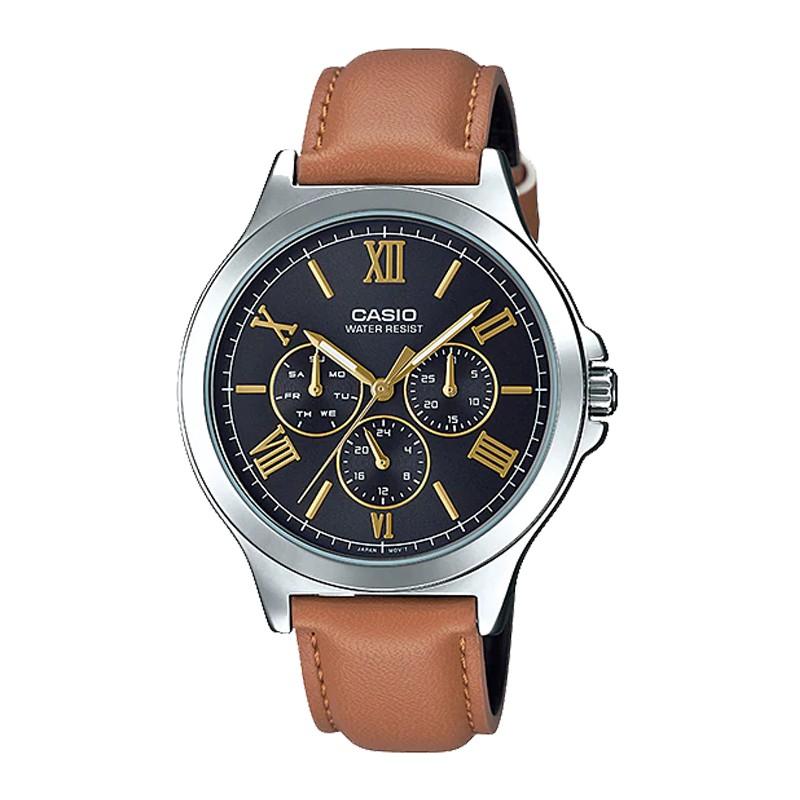 Đồng hồ Casio MTP-V300L-1AUDF dành cho nam với dây da cao cấp, 3 mặt số cá tính, chống nước.