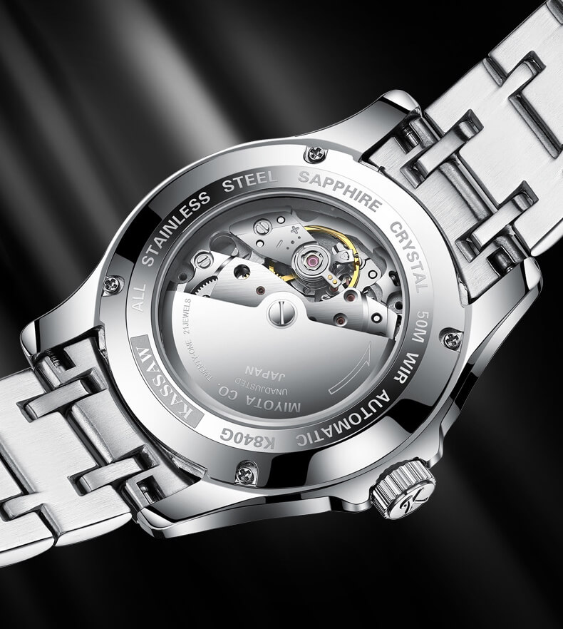 Mua tại TiktokĐồng hồ nam chính hãng Kassaw Thụy Sỹ Thiết kế sang trọng, đẳng cấp cho quý ông Thời gian trữ cót lâu lên đến 40h Chống nước 5ATM, Kính sapphire Toàn bộ máy được làm từ thép không gỉ 316L Đồng hồ cơ Automatic, Sử dụng bộ máy Seiko Nh35A Chính hãng