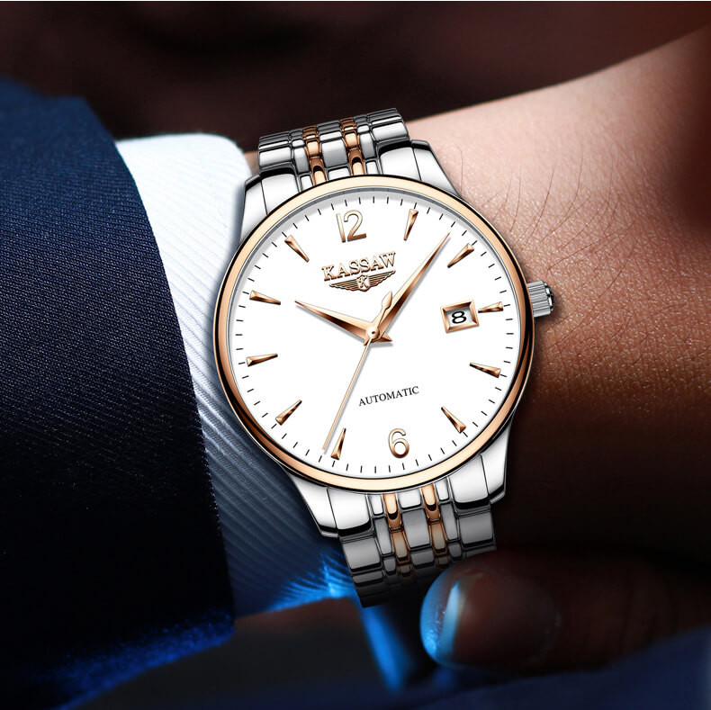 Mua tại TiktokĐồng hồ nam chính hãng Kassaw Thụy Sỹ Thiết kế sang trọng, đẳng cấp cho quý ông Thời gian trữ cót lâu lên đến hơn 40h Chống nước 5ATM, Kính sapphire Toàn bộ máy được làm từ thép không gỉ 316L Đồng hồ cơ Automatic, Sử dụng bộ máy Seiko NH35A Chính hãng