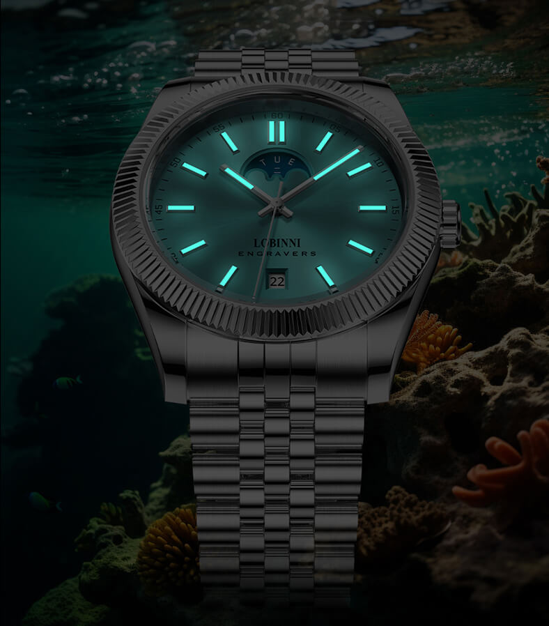 Đồng hồ nam chính hãng LOBINNI Thụy Sỹ Thiết kế sang trọng, đẳng cấp cho quý ông Thời gian trữ cót lâu lên đến 40h Chống nước 5ATM, Kính sapphire Toàn bộ máy được làm