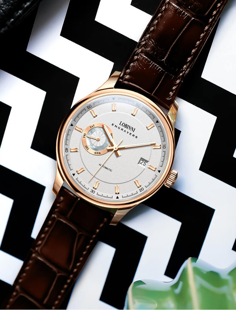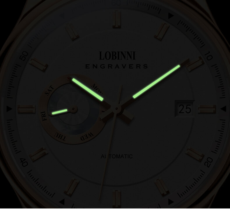 Đồng hồ nam chính hãng LOBINNI Thụy Sỹ Thiết kế sang trọng, đẳng cấp cho quý ông Thời gian trữ cót lâu lên đến 40h Chống nước 5ATM, Kính sapphire Toàn bộ máy được làm