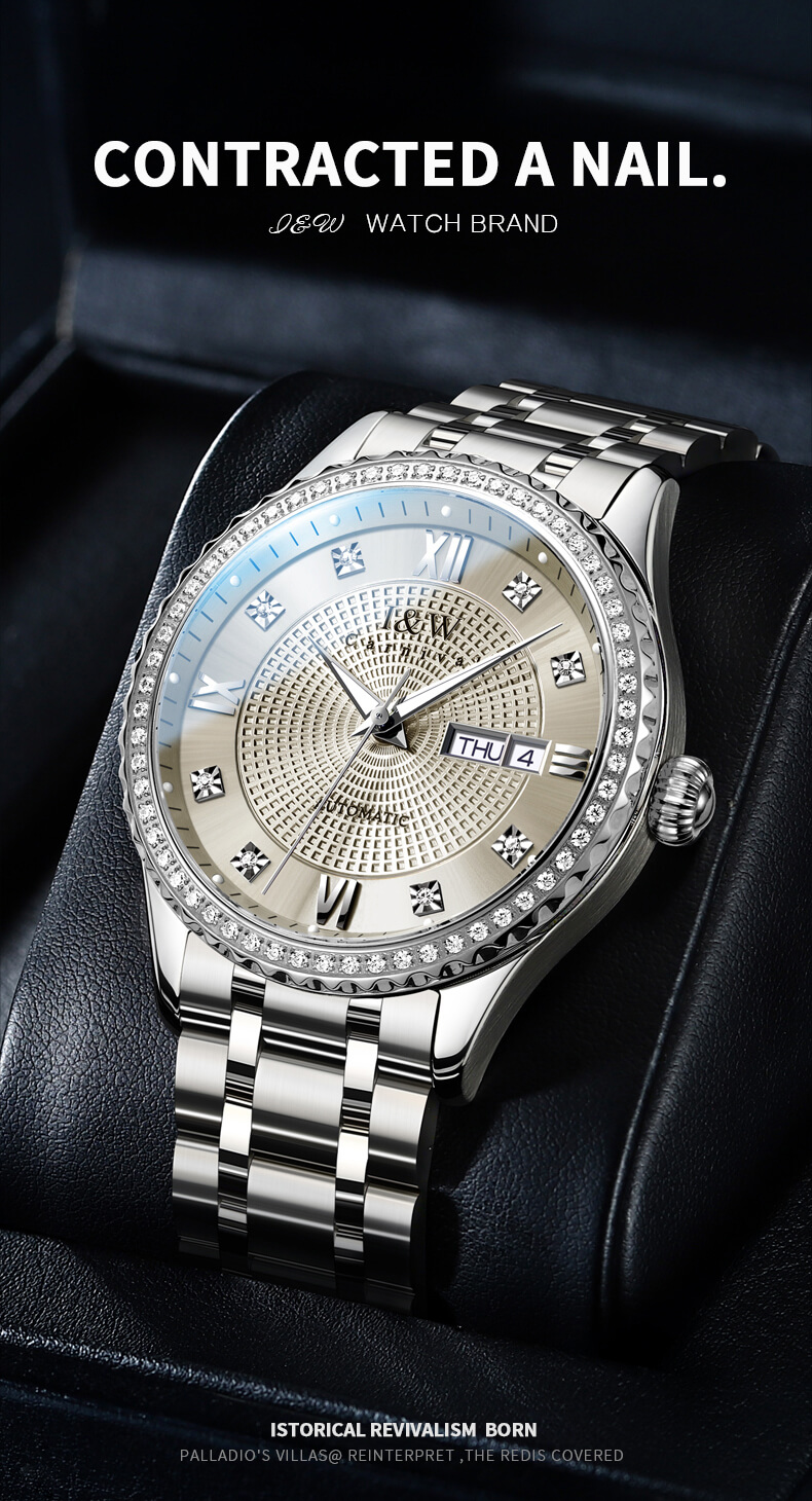 Đàn ông thành đạt luôn mong muốn sở hữu cho mình một chiếc đồng hồ đeo tay đáp ứng đầy đủ các tiêu chí: Sang trọng - Đẳng cấp - Chất lượng. Hiểu được điều này, I&W đã cho ra mắt phiên bản đồng hồ nam chính hãng đính đá với số hiệu I&W 615G, làm thỏa mãn sự mong chờ của các quý ông.