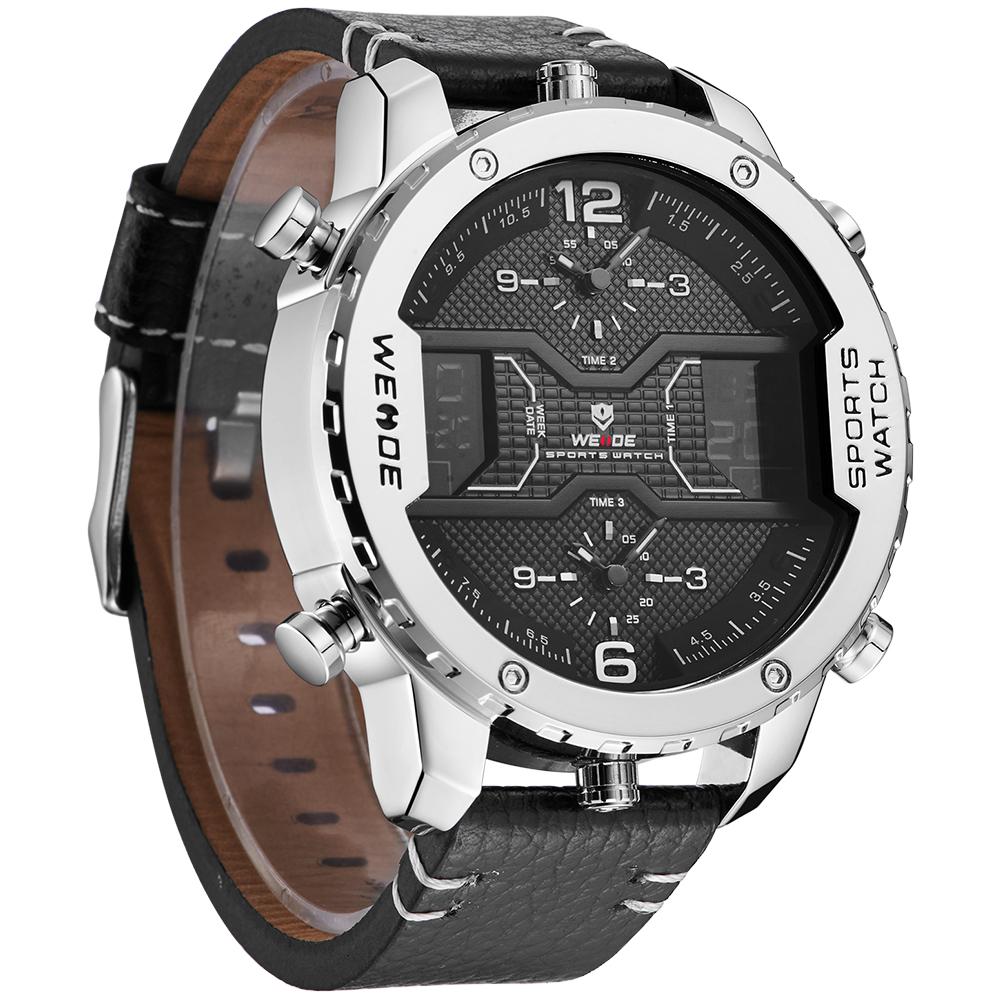 WEIDE WH6105 is a dual display quartz digital men watch for big-dial lover with tachymeter engraved on the case and the function of stopwatch and week. Features: - Six attractive versions for option. - Flashing