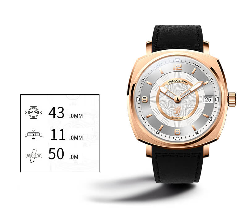 Nhãn hiệu LOBINNI Mã sản phẩm No.17017-1 Giới tính Nam Kiểu máy Automatic (Máy Cơ) Đường kính mặt 40 mm Độ dày 12 mm Chất liệu vỏ Thép không gỉ 316L Chất liệu dây Dây da cao cấp Chất liệu mặt kính Sapphire Crystal
