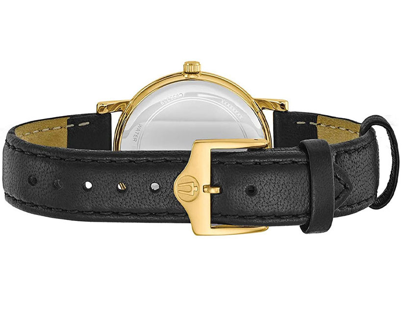 - Vật liệu vỏ / gờ: Sắc vàng kim - Dây đeo bằng da - Mặt kính khoáng - Chống nước - Giờ hiện hành thông thường Đồng hồ kim: 3 kim (giờ, phút, giây)