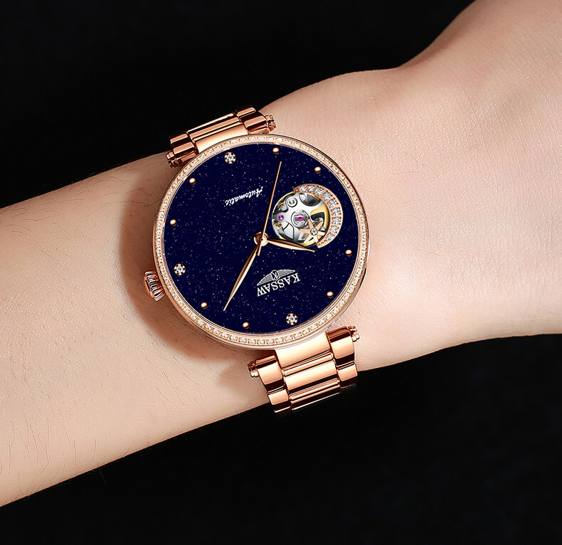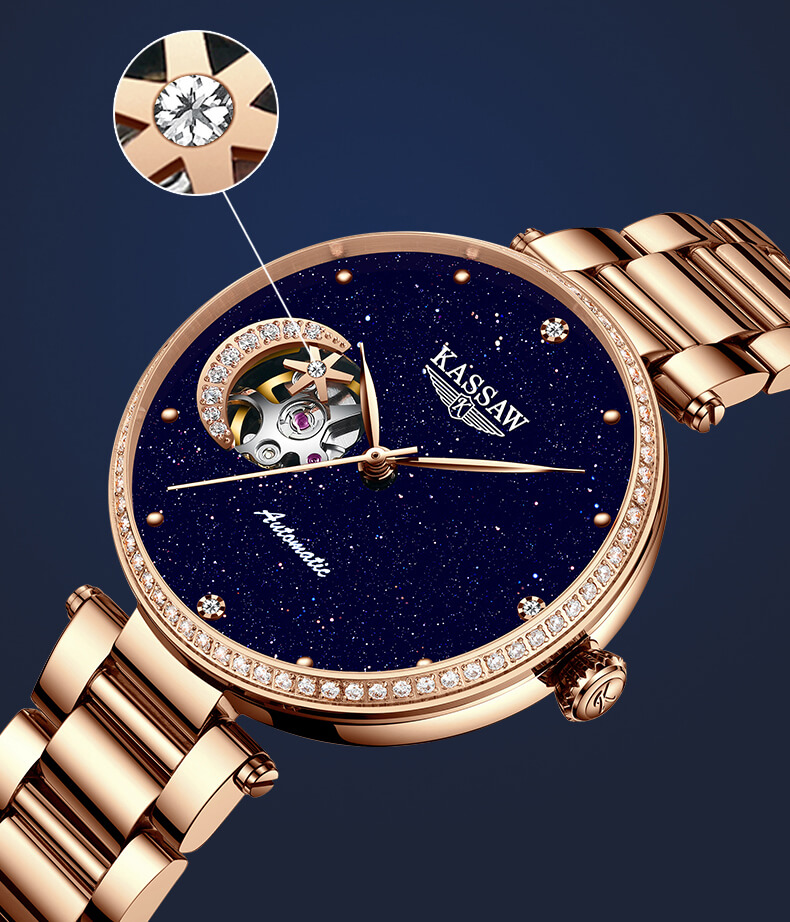 Đồng hồ nữ chính hãng Kassaw Thụy Sỹ Thiết kế hiện đại,sang trọng dành cho phái nữ Thời gian trữ cót lâu lên đến 40h Chống nước 5ATM, Kính sapphire Toàn bộ máy được làm