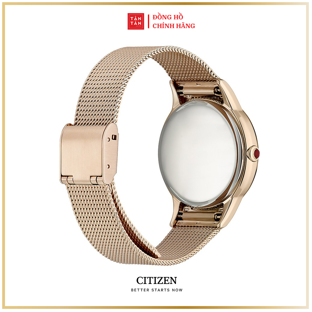 Citizen EM0813-86Y là một mẫu đồng hồ được thiết kế theo phong cách tinh giản Minimalist với khí chất sang trọng, thời thượng. Nằm trong bộ sưu tập Citizen L, đây là một trong những mẫu đồng hồ đã chiếm trọn trái tim các chị em phụ nữ thời gian gần đây. Bên cạnh bộ máy Eco-Drive hiện đại và bền bỉ, sản phẩm còn sở hữu vẻ ngoài hoàn hảo với sắc vàng hồng chủ đạo, hài hòa cùng mặt số khảm xà cừ cao cấp và bộ kim được chế tác hết sức công phu.