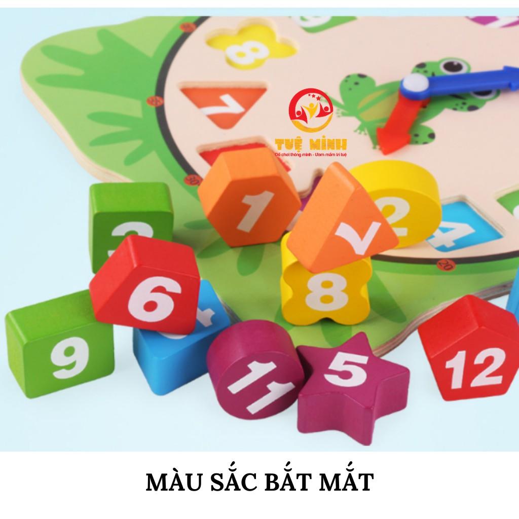 Với các hình khối màu sắc cơ bản có gắn số giờ của đồng hồ giúp bé nhận biết và khám phá thế giới xung quanh