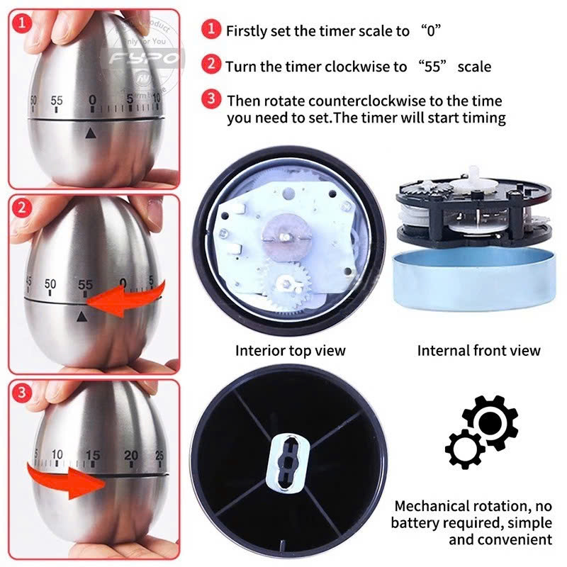✨Đồng Hồ Pomodoro Hẹn Giờ 60 Phút Kim Loại QUẢ TRỨNG