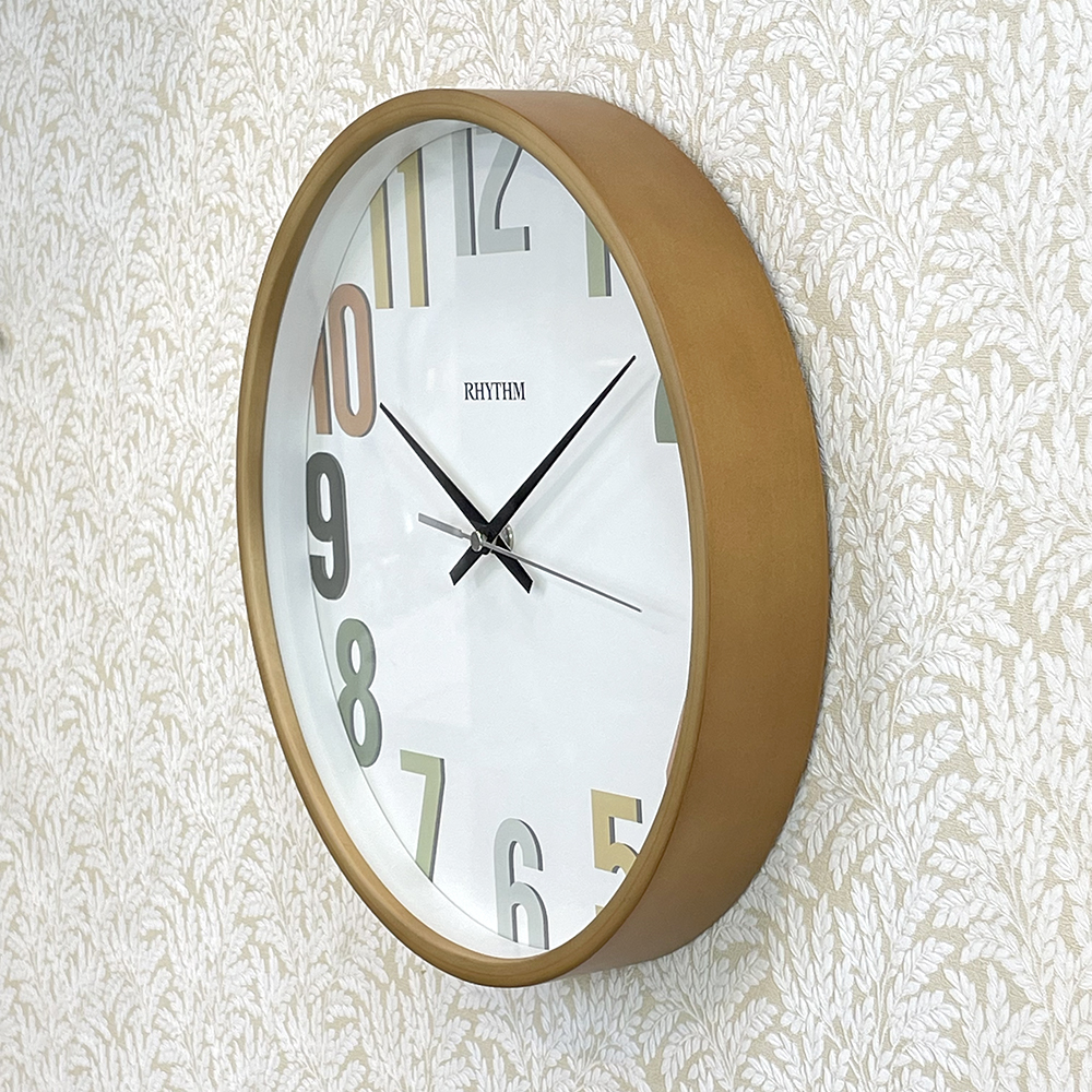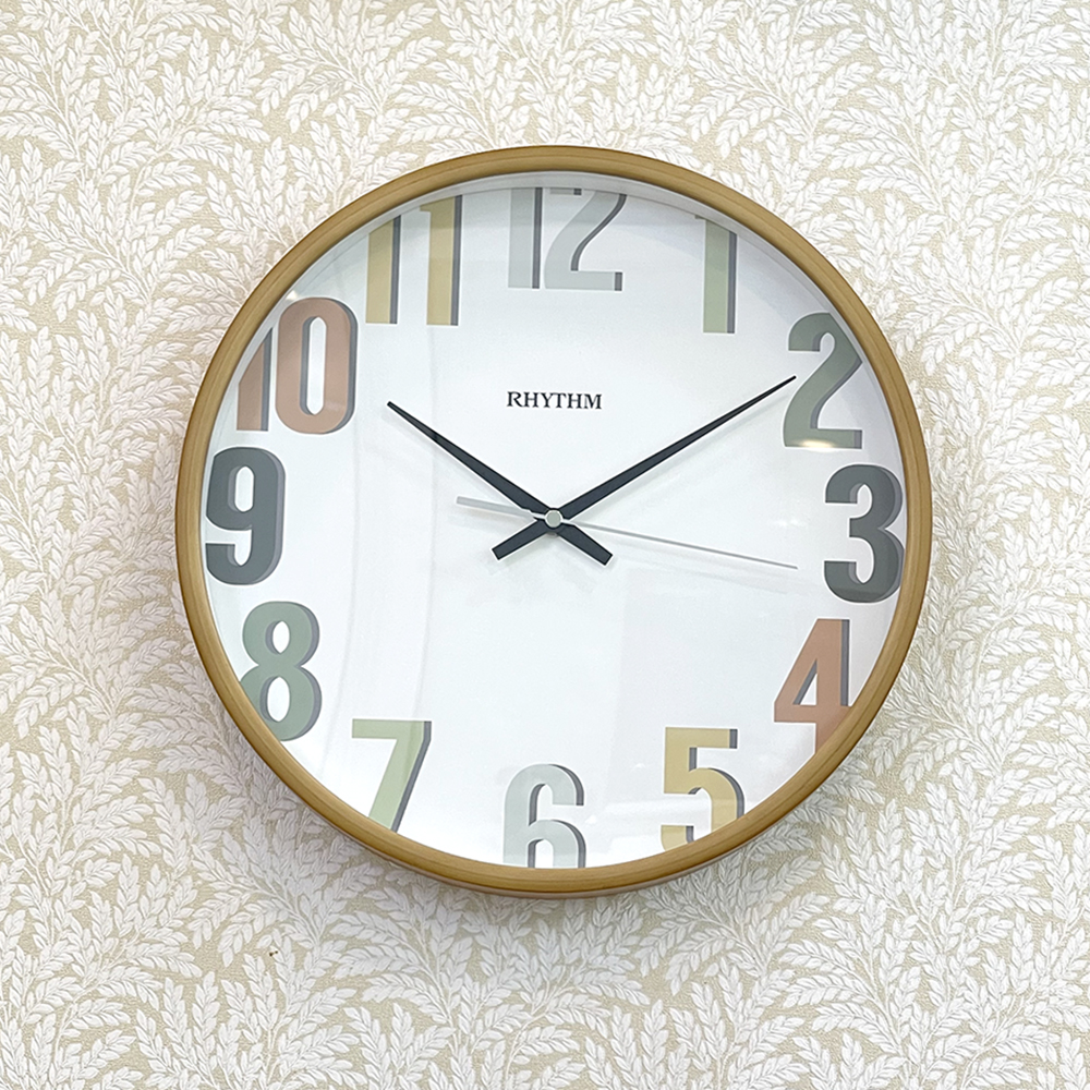 Đồng hồ treo tường Nhật Bản Rhythm CMG876NR18, dùng pin (AA x 1), vỏ nhựa màu vàng / kết hợp mạ vàng sang trọng. Kích thước 31.5 x 4.5cm, trọng lượng 625g. Máy kim trôi