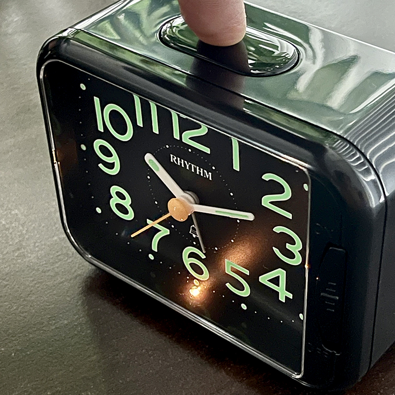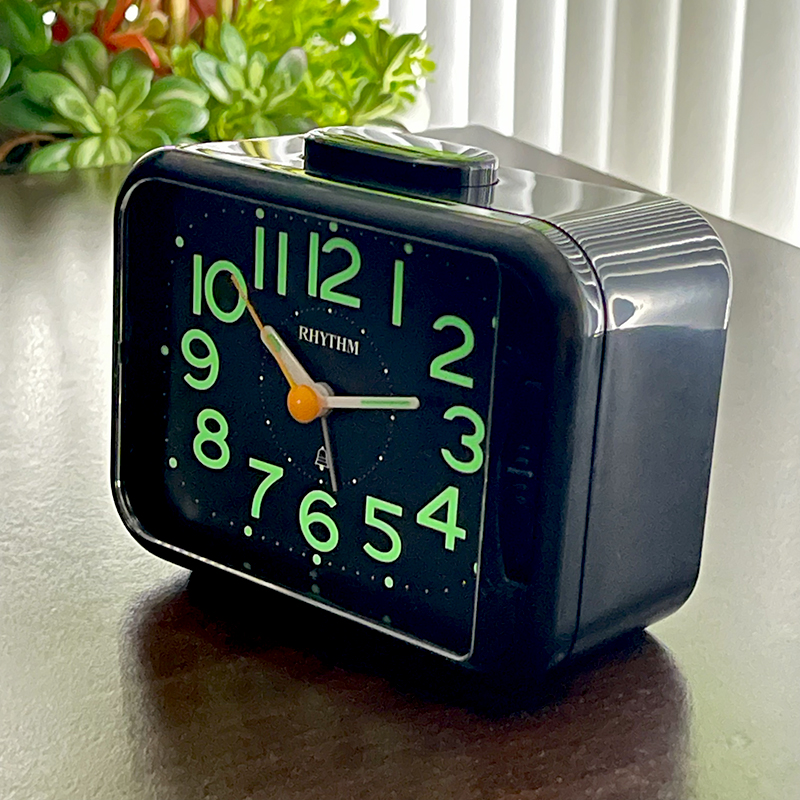 Đồng hồ báo thức Rhythm CRF801NR03 – KT:11.3 x 10.2 x 6.6cm. TRọng lượng 220g Vỏ nhựa. Dùng Pin. 2 chức năng Báo thức tiếng bíp và tiếng chuông reng, có chức năng reo lập