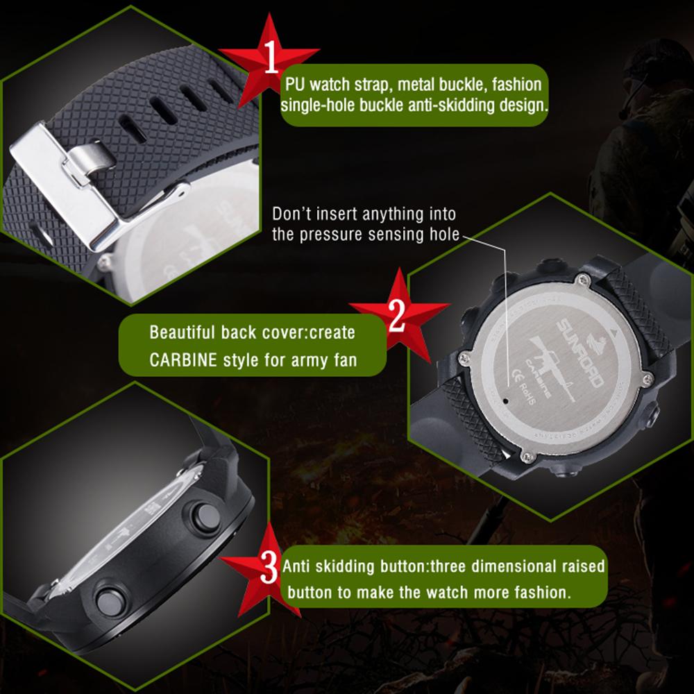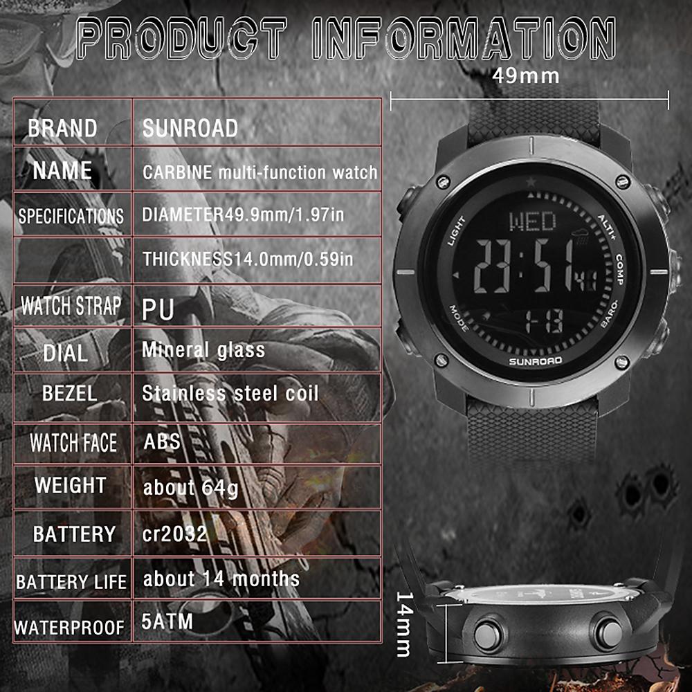 This digital sports watch features many functions: altimeter, barometer, thermometer, pedometer, compass, weather forecast, world time, and more. It is a great gift for those who love outdoor sports. Features: Multifunctional sports watch with altimeter,