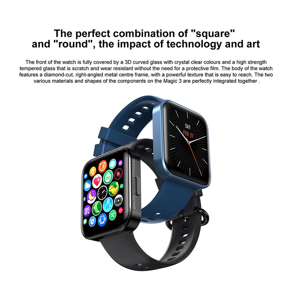 The perfect combination of square'and round, the impact of technology and art. The front of the watch is fully covered by a 3D curved glass with crystal clear color and a high strength tempered glass that is scratch and wear resistant without the need for a protections film. The body of the watch features a diamond-cut, right-angled metal centre frame, with a powerful texture that is easy to reach. The two various materials and shapes of the c-omponents on the Magic3 are perfectly integrated together.