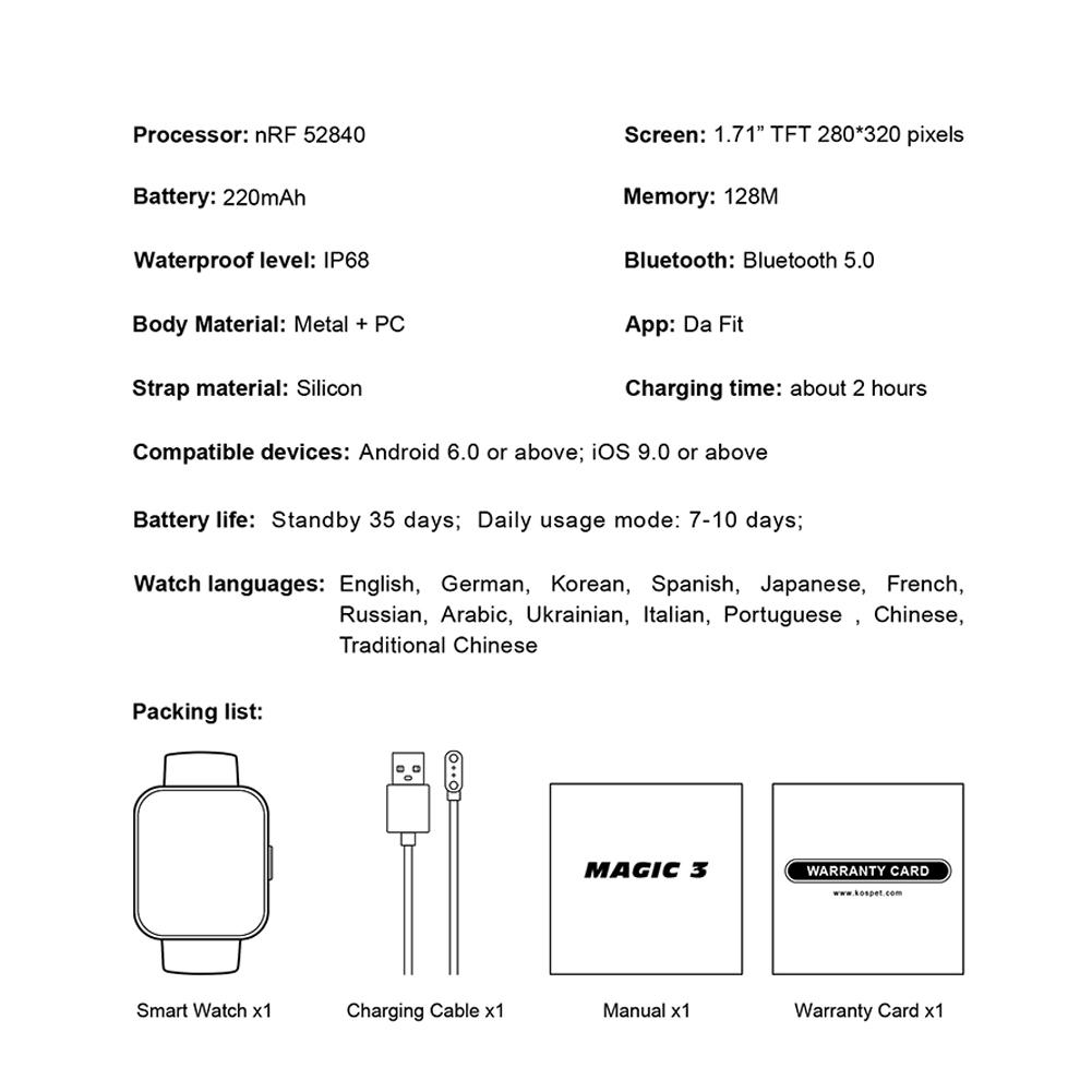 Đồng hồ thông minh thể dục Kospet Magic3 theo dõi nhịp tim và giấc ngủ không thấm nước