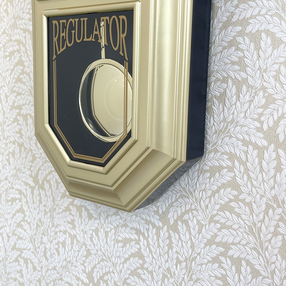 Đồng hồ treo tường Nhật Bản Rhythm CMG876NR18, dùng pin (AA x 1), vỏ nhựa màu vàng / kết hợp mạ vàng sang trọng. Kích thước 31.5 x 4.5cm, trọng lượng 625g. Máy kim trôi