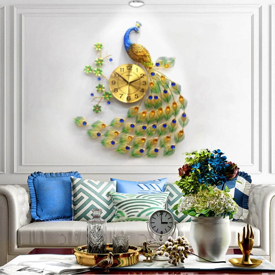 Đồng Hồ Treo Tường Trang Trí Đẹp Con Công S-A68 chim khổng tước độc lạ 3d cỡ lớn nghệ thuật phù hợp cho phòng khách, phòng ngủ