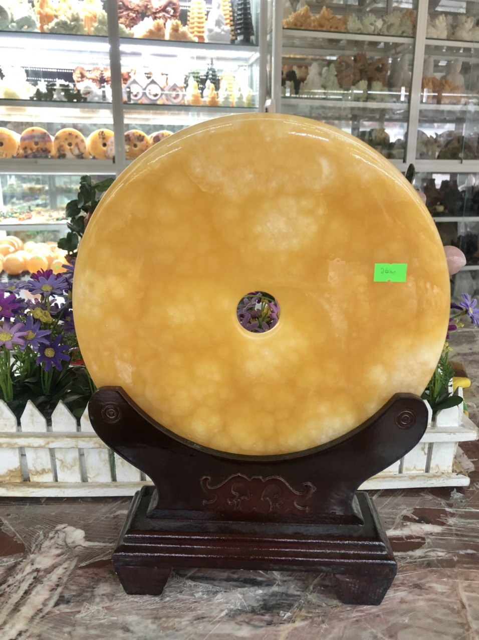 ✨Đồng tiền, đồng điếu may mắn phong thủy chiêu nạp tài lộc đá ngọc hoàng long - Đường kính 26 cm