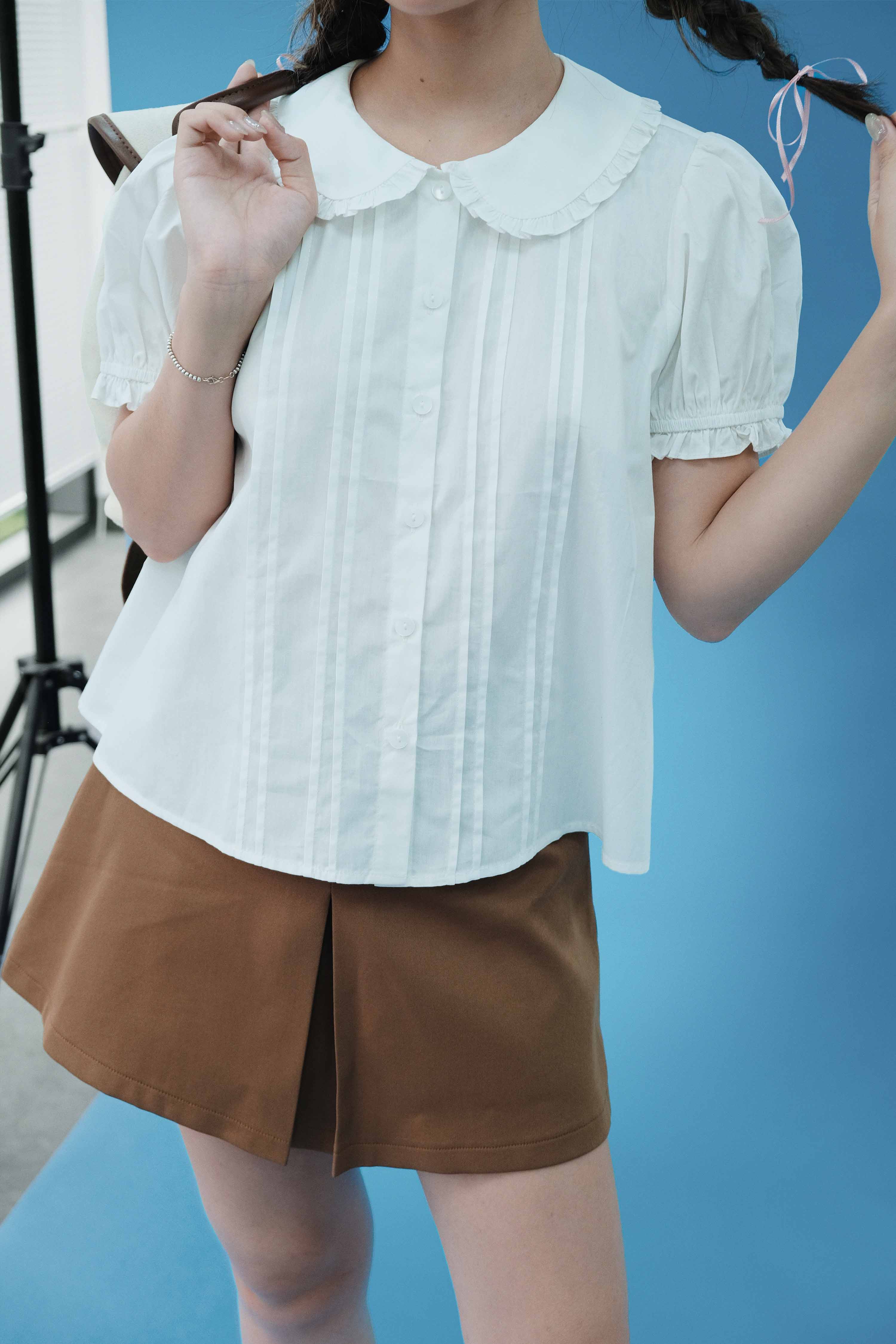 ✨DOTTIE - Áo sơ mi cổ sen tay phồng - Trắng kem - T1123