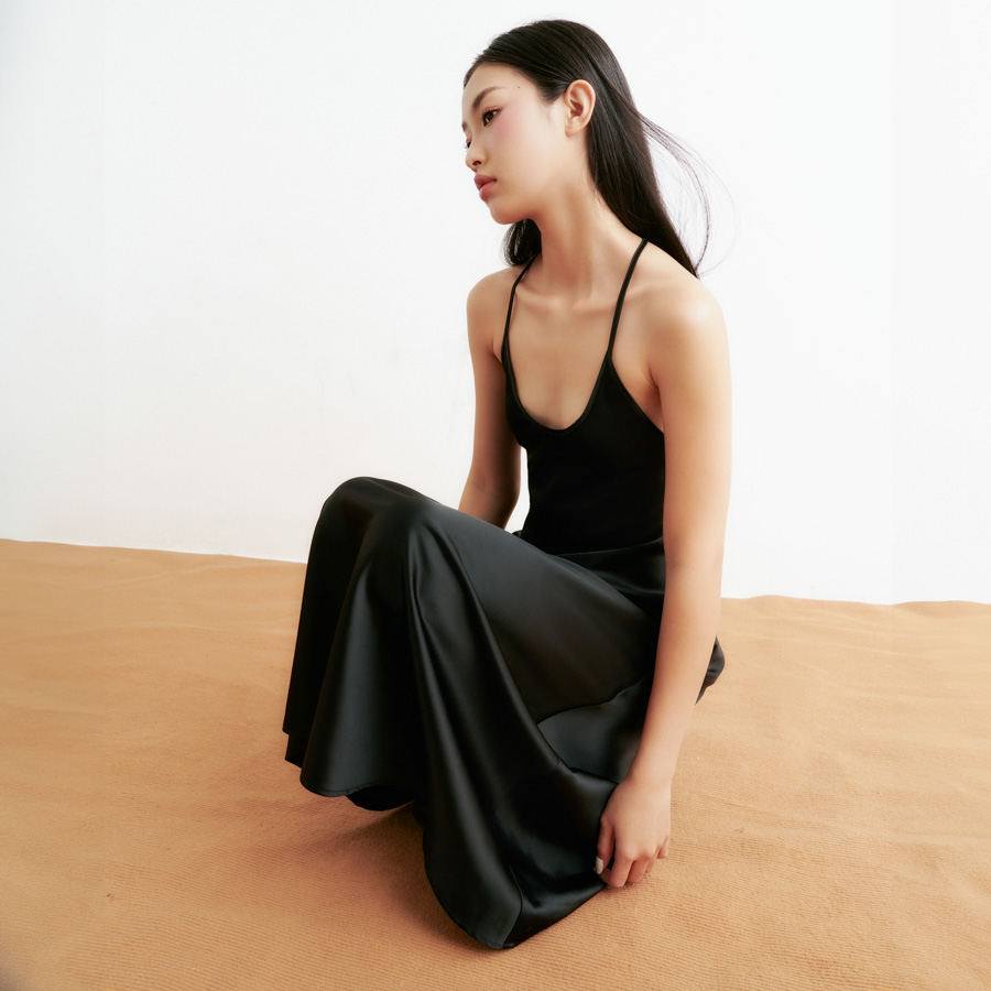 ✨DOTTIE - Đầm lụa midi hở lưng nữ đen D0388